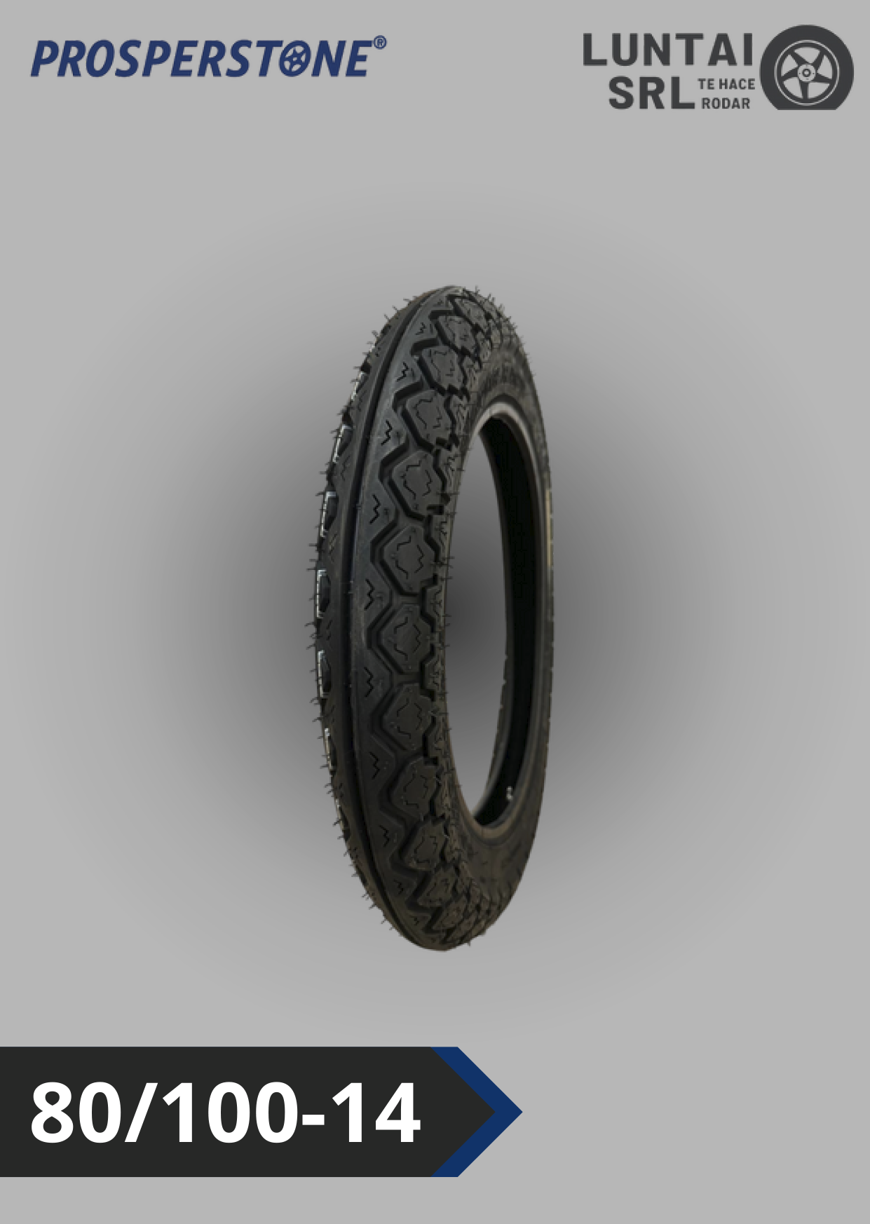 Cubierta de Moto PROSPERTONE 80/100-14 MR-024 uso en Asfalto y Camino no pavimentado